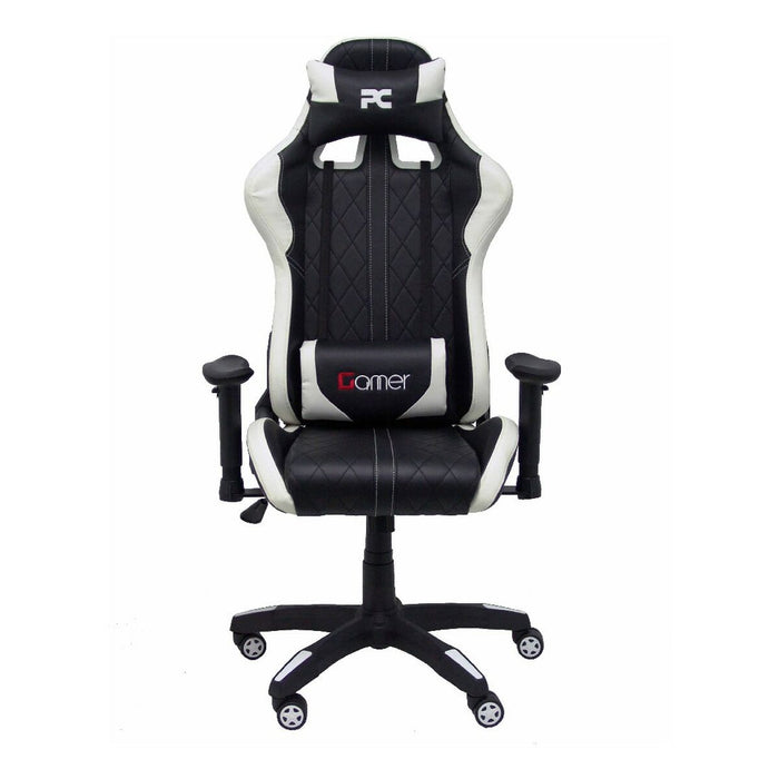 The 7216DBSPNE gaming chair from Piqueras y Crespo is designed for users who demand comfort and durability during long computer sessions. This model combines a modern design in white and black colors, offering an elegant and versatile look, ideal for work or gaming spaces. Its sturdy frame is made of metal, ensuring strength and stability, while the use of plastic in certain parts helps keep the weight down and allows easy movement. The chair features integrated armrests, providing ergonomic support to reduce arm and shoulder fatigue, a key factor for improving posture during extended use. The setup meets the requirements of a gaming chair, designed to offer a balance between firmness and comfort, promoting proper body alignment. Thanks to its functional design and quality materials, this product is a practical solution for gamers and professionals seeking a durable and aesthetically refined chair for their gaming or work area.